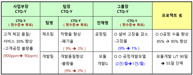삼성 SDI에는 삼성 고유의 프로젝트 발굴방법론인 CTQ-Y 전개방식을 활용한다. 이는 사업부 CTQ-Y → 팀 CTQ-Y → 그룹 CTQ-Y로 큰 조직의 문제를 작은 조직의 문제로 하부 전개(세분화)하여 프로젝트를 발굴하는 것이다. “Divide and Conquer”는 컴퓨터 과학 알고리즘에서 쓰이는 전략으로써 “분할하여 정복한다”는 의미이다. 문제 해결관점에서는 큰 문제를 해결 가능한 조각(Manageable Piece)으로 나누어 전체 문제를 해결한다. 이를 위해 문제를 두 가지 관점에서 세분화할 수 있다.